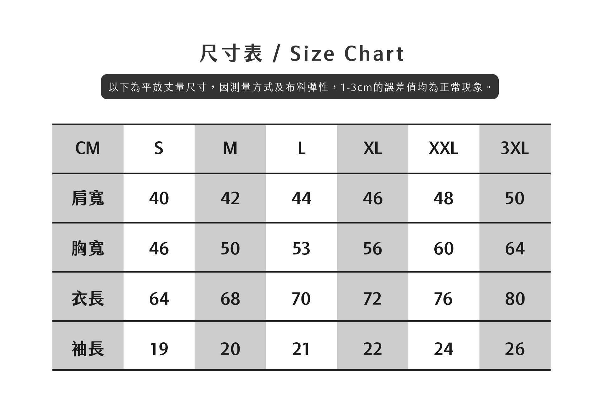 ・每個人對於穿著寬鬆感的認定均不相同,建議您以胸圍來做為參考尺寸。